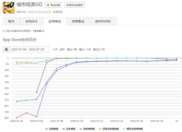 虽说是“无心插柳柳成荫”,但涌入的玩家数量非常惊人,达到了每日新增40万,而与此同时,《城市精灵GO》在苹果应用商店榜单上的排名也出现了爆发式增长,于7月9日荣登免费榜冠军。截自今日,虽然PG的热度有所下降,但它仍然排在免费榜前五之内。要知道在PG出来之前,即使改了名,免了费,它也不过是一个徘徊在免费榜500-800名开外、名不见经传的游戏。