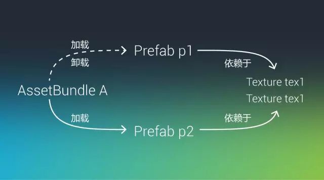 这种问题产生的根源在于从AssetBundle中加载出来的资源,在该AssetBundle卸载之后与此AssetBundle的联系就断开了。举个例子,我从AssetBundle A 中加载出来一个Prefab p1, 那么p1本身依赖的资源,例如一个Texture tex1也会自动加载到内存中。然后我用AssetBundle.Unload(false)来卸载AssetBundle A,此时p1与AssetBundle A已断开关系。之后过了一段时间,我需要从AssetBundle A中加载另一个Prefab p2 ,假设p2也依赖于Texture tex1,那么我再次加载AssetBundle A,从中加载p2时tex1会再次被加载到内存中,导致此时内存中存在两份tex1。