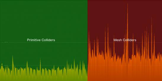 正如分析器截图所示,射线投射与网格碰撞器的碰撞检测在每帧都增加了不少工作。