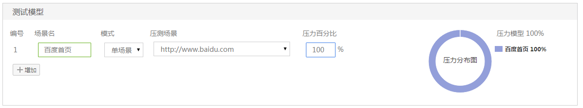 7、 编辑一下测试模型,增加一个场景名,本篇暂时只介绍一个首页场景,所以暂时把所有100%的压力都放在该场景上。