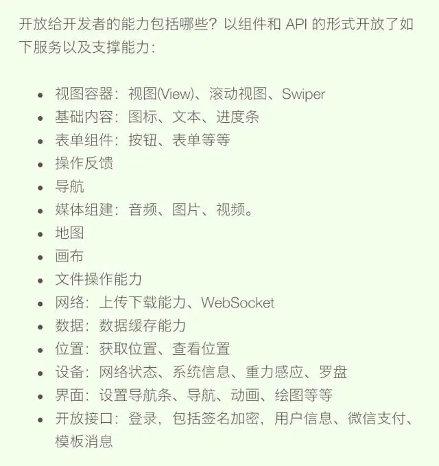 关键是,你们没有感觉到,更是我们技术人的机遇吗?以前你只是js开发工程师,android开发工程师,ios开发工程师,做一个app需要前端和后台一起配合,现在我们技术人,语言都是相通的,js学起来也不是很难,而且微信提供了很多的组件,架构和文档,我们程序员要想实现自己的想法或者创业岂不是更简单了?