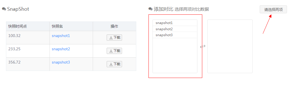 如上图所示,在“mono内存检测“的测试报告中,每两个snapshot都可以进行对比,通过鼠标单击就可以选择,选中两个场景之后就可以点击”提交对比“: