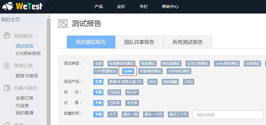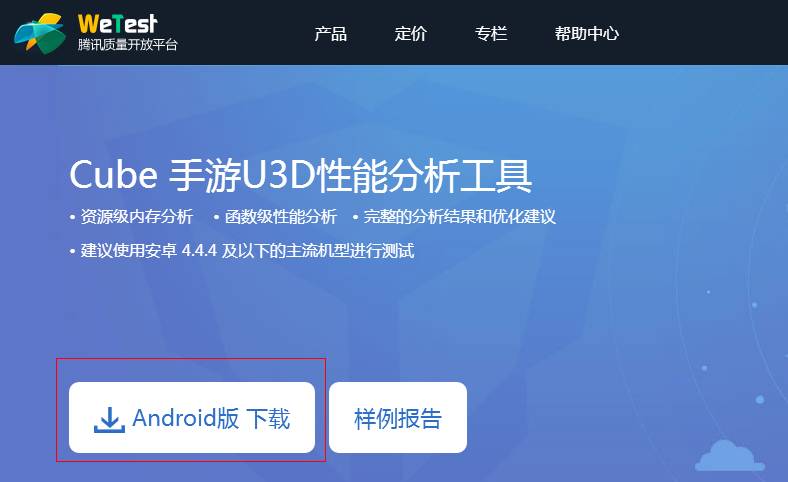 登录http://wetest.qq.com/ ,在“产品“菜单下选择”性能测试“,点击”Unity客户端性能测试“
