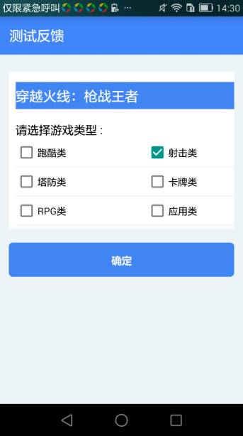 ⑤“上传”,退出游戏,选择测试游戏的游戏类型(最多选择两类),点击“确定”,在弹出的上传页,点击“上传”,完成数据的上传。