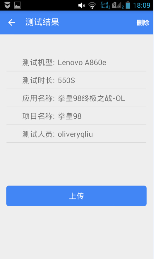 结束测试后,打开WeTestAPP点击“上传”按钮。