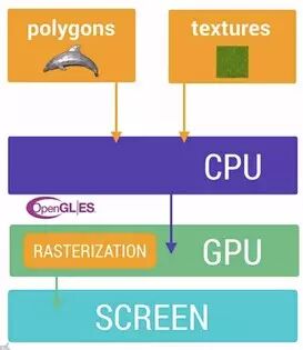 CPU负责把UI组件计算成Polygons,Texture纹理,然后交给GPU进行栅格化渲染。
