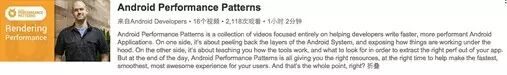 2015年伊始,Google发布了关于Android性能优化典范的专题,一共16个短视频,每个3-5分钟,帮助开发者创建更快更优秀的Android App。课程专题不仅仅介绍了Android系统中有关性能问题的底层工作原理,同时也介绍了如何通过工具来找出性能问题以及提升性能的建议。主要从三个方面展开,Android的渲染机制,内存与GC,电量优化。下面是对这些问题和建议的总结梳理。