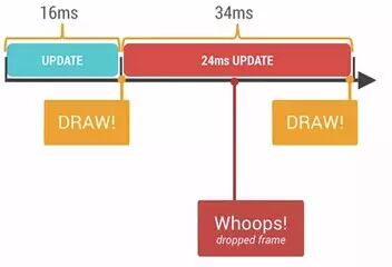 如果你的某个操作花费时间是24ms,系统在得到VSYNC信号的时候就无法进行正常渲染,这样就发生了丢帧现象。那么用户在32ms内看到的会是同一帧画面。