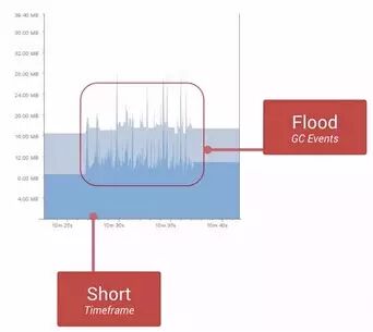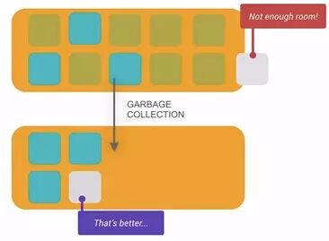 瞬间产生大量的对象会严重占用Young Generation的内存区域,当达到阀值,剩余空间不够的时候,也会触发GC。即使每次分配的对象占用了很少的内存,但是他们叠加在一起会增加Heap的压力,从而触发更多其他类型的GC。这个操作有可能会影响到帧率,并使得用户感知到性能问题。