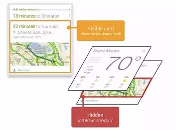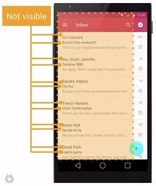 有一个窍门是我们可以通过执行几个APIs方法来显著提升绘制操作的性能。前面有提到过,非可见的UI组件进行绘制更新会导致Overdraw。例如Nav Drawer从前置可见的Activity滑出之后,如果还继续绘制那些在Nav Drawer里面不可见的UI组件,这就导致了Overdraw。为了解决这个问题,Android系统会通过避免绘制那些完全不可见的组件来尽量减少Overdraw。那些Nav Drawer里面不可见的View就不会被执行浪费资源。