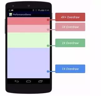 Overdraw有时候是因为你的UI布局存在大量重叠的部分,还有的时候是因为非必须的重叠背景。例如某个Activity有一个背景,然后里面的Layout又有自己的背景,同时子View又分别有自己的背景。仅仅是通过移除非必须的背景图片,这就能够减少大量的红色Overdraw区域,增加蓝色区域的占比。这一措施能够显著提升程序性能。