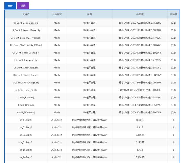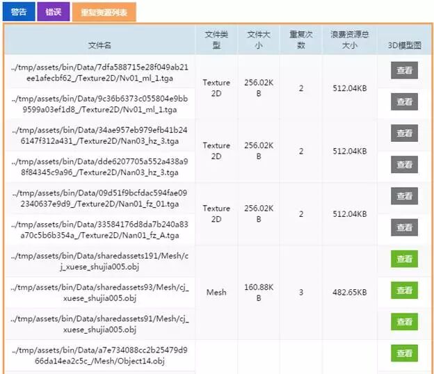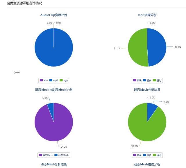 3.在这份报告中,你不仅能看到各项资源的分析和详细占比情况,还能详细查阅每一个具体的不合理之处,帮助游戏开发者们点到点的解决问题,让每一个玩家都能有不错的游戏体验。