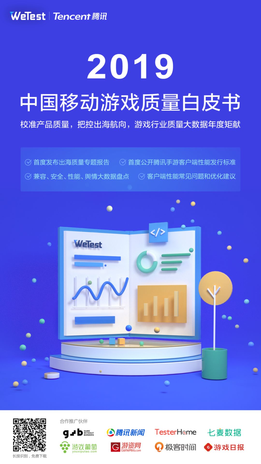 纵观整份白皮书,腾讯WeTest以市场硬件、兼容、客户端性能、服务器性能、安全以及玩家口碑等质量视角来进行分析与数据采集,试图通过与2019年海内外手游市场动态相结合,为开发者决策提供第一手也是更全面更客观的数据信息。无论你在2020年的计划是继续深耕国内市场,以精品促发展求突破,还是谋求布局海外市场进行更广的产品投放计划,透过《2019中国移动游戏质量白皮书》所呈现的详实的数据与分析,你都能从中找到自己想要的答案。