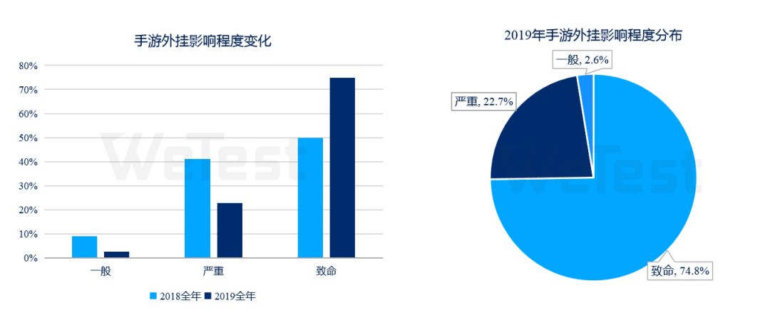 从开发者的角度来说,手游安全性的问题同样不容小觑。在《2019中国移动游戏质量白皮书》中,腾讯WeTest通过梳理相关数据得出了一些关键性的结论,比如在全球范围内,外挂的问题仍然严峻,尤其是海外作弊的玩家增长更为明显;由外挂问题所导致的致命安全性影响占比提升到了74.8%;在动作射击游戏成为外挂重灾区之余,其他品类游戏中出现外挂问题的情况也开始呈增长趋势。除了要关注外挂问题带来的影响外,手游研发期间违规操作所带来的漏洞等一系列安全问题也需要开发者们着重关注。
