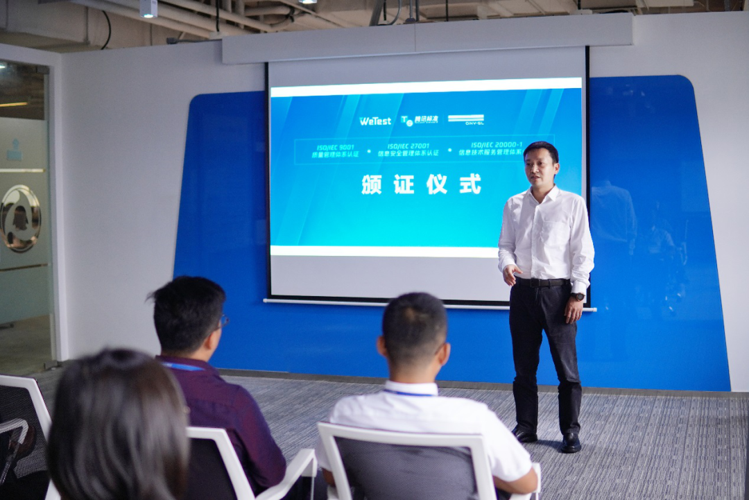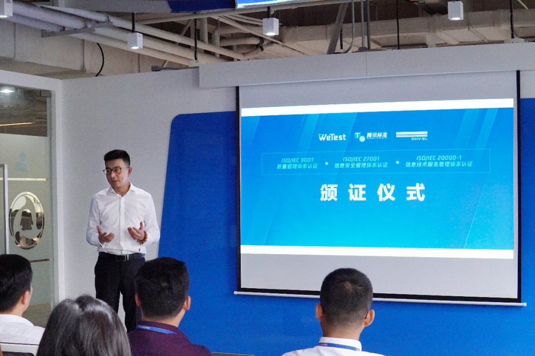 “ISO9001是一个1987年就发布的世界上最成熟的质量管理国际标准。在腾讯这个蓬勃发展的企业里,作为全新型技术平台的腾讯WeTest,能够率先建立这三个ISO体系,让我们看到了WeTest团队的高瞻远瞩。在十几年品质经验积累下,腾讯WeTest将以往的成功经验积累出来形成了标准,迈向了一个新的国际化起点。