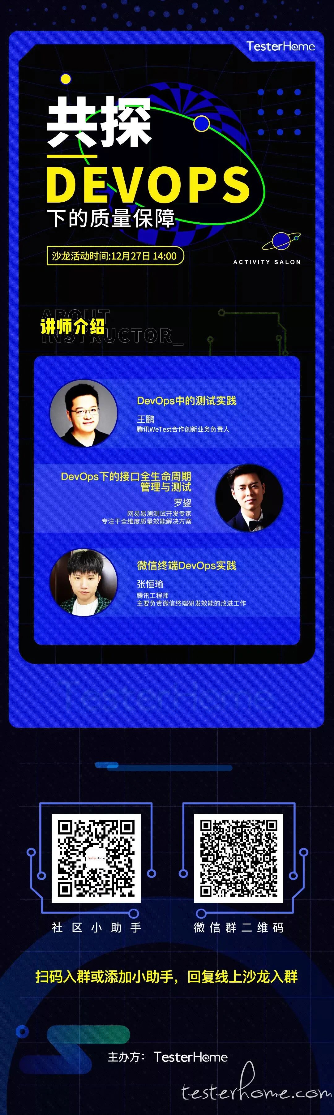 WeTest携手Testerhome,与微信等专家一起来和大家共同探讨DevOps下的质量保障。