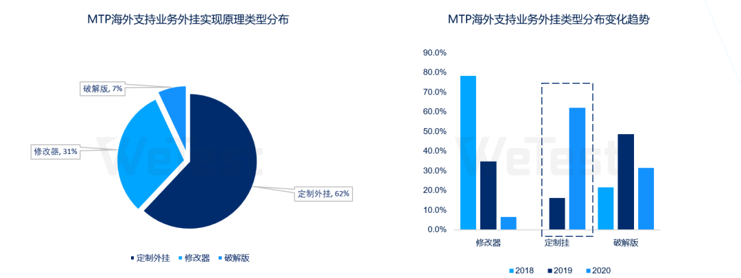 随着手游市场竞争日趋激烈,非正当获利在移动游戏领域屡见不鲜,外挂等安全性问题成了开发者们不得不面对的难题。《2020移动游戏质量白皮书》就全球范围内的外挂问题为从业者们敲响警钟:国内定制类外挂比例达到66%,较19年增长6.5倍。海外定制类外挂比例已经达到了62%,较2019年增长了足足3倍,尤其是强竞技游戏品类的外挂对抗挑战持续增大。