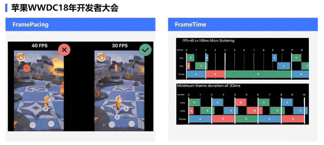 在苹果WWDC18年开发者大会上,苹果提出了一个FramePacing的概念,如下图所示:
