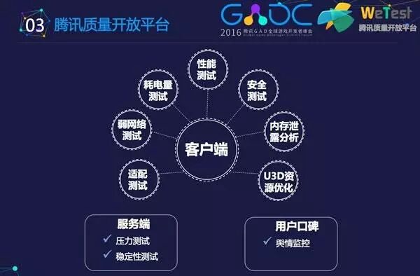 腾讯GADC全球游戏开发者峰会是由国内最大的游戏开发商、发行商和平台方腾讯发起主办的面向全球游戏开发者的活动,首届GADC以“链接·生态”为主题,有观点指出由腾讯游戏主导的开发者峰会,将有望成为腾讯游戏施行“连接一切”,全面布局独立游戏领域过程中的重要一步。而腾讯WeTest作为腾讯首批开放平台,是腾讯合并海量开发资源、提供开发土壤的战略核心。
